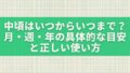 「月の中頃にお届けします」「来週中頃に伺います」と言われたとき、具体的に何日を想像しますか。中頃は便利な言葉ですが、実は人によって受け取り方に差が生まれやすい表現でもあります。この記事では「中頃 いつからいつまで」という疑問に対し、月・週・...