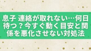 息子と連絡が取れない時間が続くと、胸の奥が落ち着かなくなりますよね。「事故ではないか」「嫌われてしまったのか」と、悪い想像ばかりが浮かんでしまうこともあるでしょう。けれど大切なのは、焦りのまま動くことではなく、危険度を見極めて順番に行動する...
