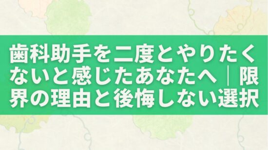 この記事では、歯科助手を二度とやりたくないと感じる人に共通する理由を整理し、辞めて後悔する人としない人の違いを解説します。