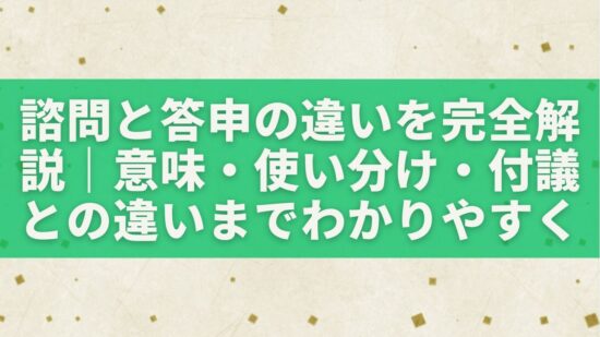 本記事では、諮問と答申の意味の違いをシンプルに整理し、付議との比較や正しい使い分けまで丁寧に解説します。