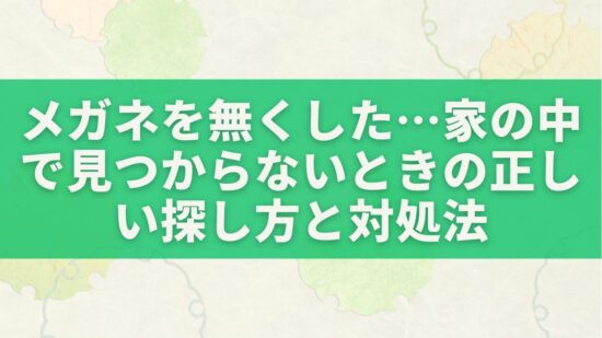 メガネを無くしたとき、家の中にあるはずなのに見つからないと、本当に焦りますよね。